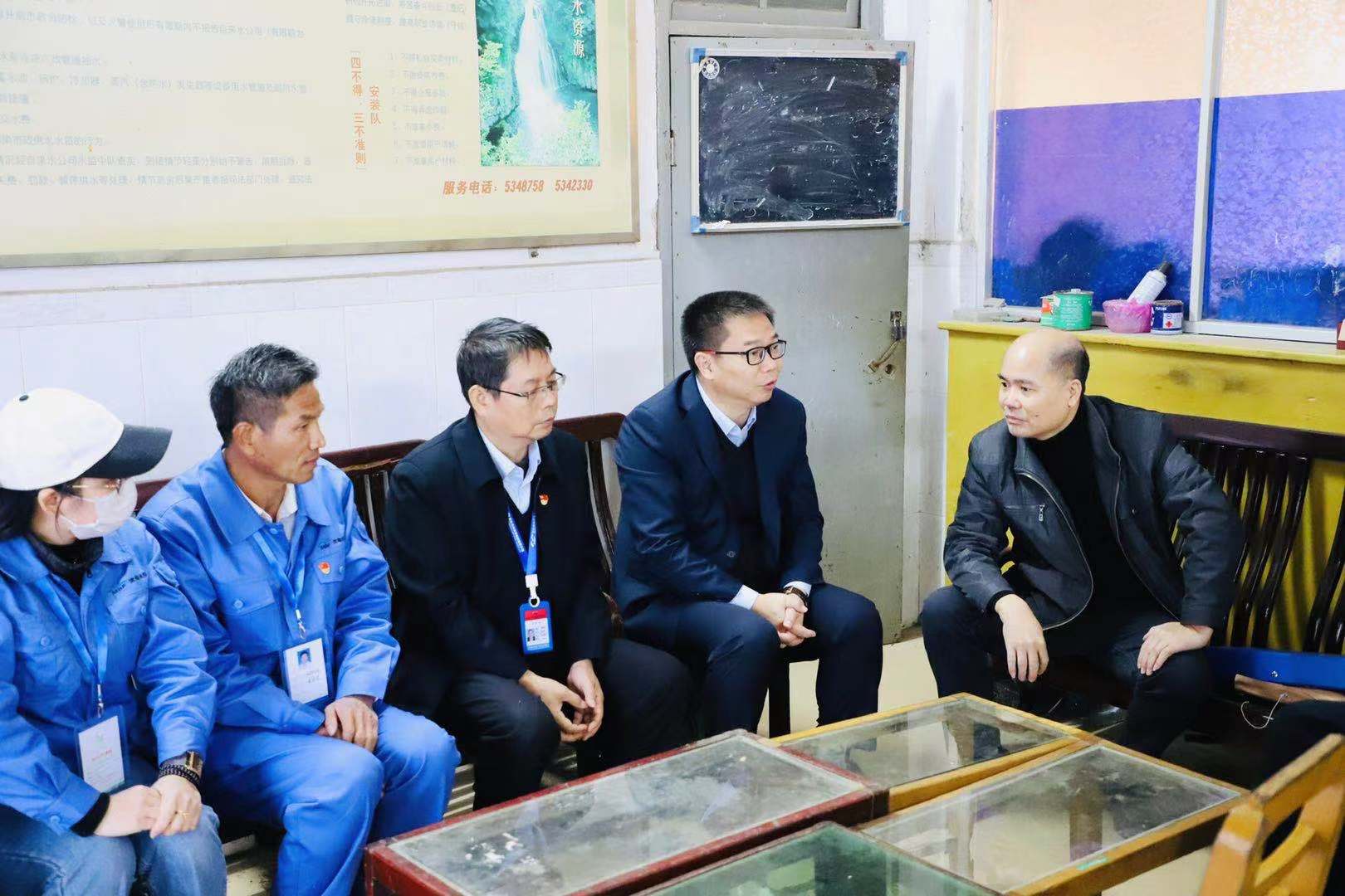 移交儀式結束后,黃遠維一行前往位于電城鎮中心的電城水廠供水辦事處,了解電城居民日常繳納水費、報裝維修等具體工作情況。