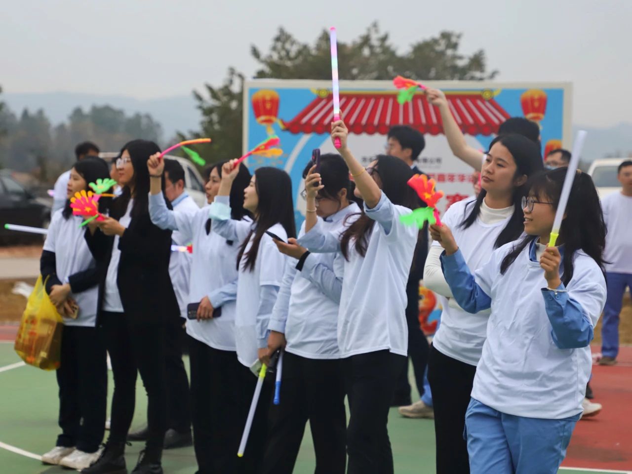 除此之外,在一片歡樂祥和的氣氛中,大家還即興以部門或個人進行現場歌唱表演,游園活動又秒切成“大型K歌現場”,在“歌手們”、“歌唱組合們”的高歌中,在“歌迷粉絲”的歡呼中、揮舞的熒光棒向天空傳遞彩光,發射快樂。