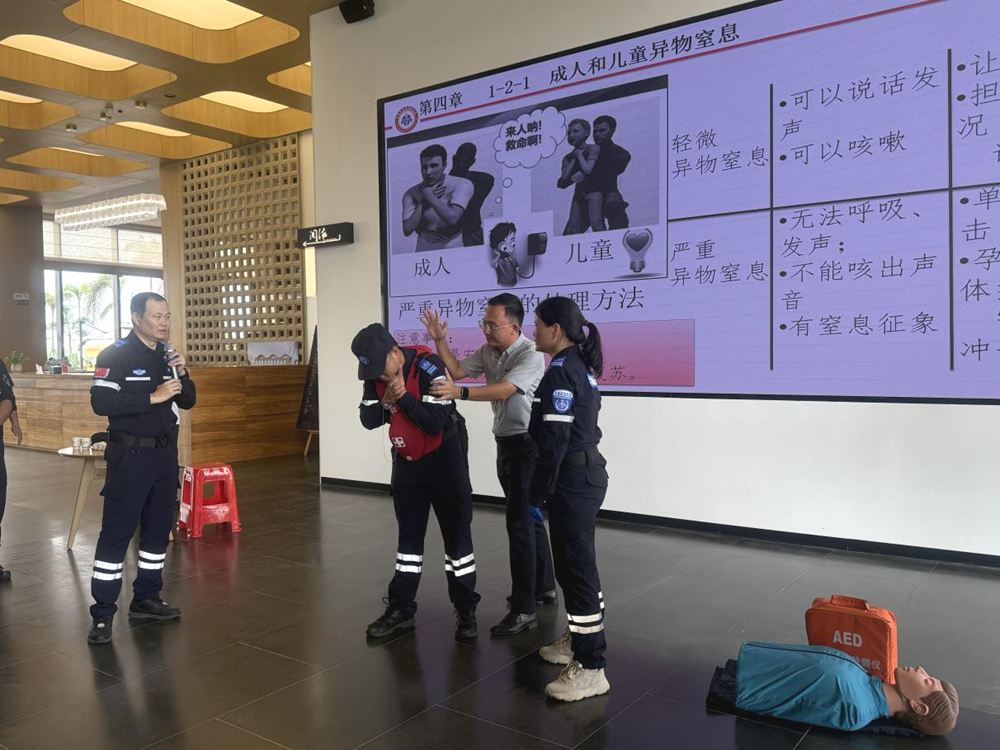 海姆利克急救法是應(yīng)對(duì)氣道異物梗阻的有效方法。教練員通過生動(dòng)的模擬裝備講解和現(xiàn)場(chǎng)演示,讓員工們深刻認(rèn)識(shí)到氣道異物梗阻的危險(xiǎn)性,并詳細(xì)介紹了海姆利克急救法的操作要點(diǎn),包括站位、手法、力度等。員工們?cè)谀M練習(xí)中,互相配合,反復(fù)練習(xí),確保能夠熟練掌握這一急救技能。
