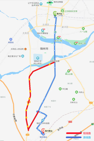 從2021年5月8日開始,因阜錦線南山西側隧道封閉施工,205路(錦州站—錦州南站方向)車輛無法正常通行,由中央南街改行南廣路、凌西大街、渤海大道至嵩山路返回原線路,不經過金城御瀾山暻園、桃源小鎮路口和桃園3處單側公交站點。增設碧盛慧(210路)、公交三公司(215路)、北鋪(215路)、桃園道口(215路)、大圍子(215路)、車輛管理所(215路)、北三道壕(215路)和市松山紙板公司(215路)8處單側公交站點,待道路具備通行條件后,立即恢復運行原線路;錦州南站—錦州站方向按原線路運行。