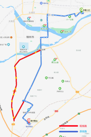 從2021年5月8日開始,因阜錦線南山西側隧道封閉施工,212路(安居小區—錦州南站方向)無法正常通行,由中央南街改行南廣路、凌西大街、渤海大道至嵩山路返回原線路,不經過金城御瀾山暻園、桃源小鎮路口和桃園3處單側公交站點。增設碧盛慧(210路)、公交三公司(215路)、北鋪(215路)、桃園道口(215路)、大圍子(215路)、車輛管理所(215路)、北三道壕(215路)和市松山紙板公司(215路)8處單側公交站點,待道路具備通行條件后,立即恢復運行原線路;錦州南站—安居小區方向按原線路運行。