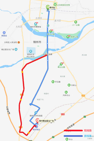 從2021年5月8日開始,因阜錦線南山西側隧道封閉施工,K1路(錦州站—錦州南站方向)運行車輛無法正常通行,由中央南街改行南廣路、凌西大街、渤海大道、泰山路至錦州南站,不經過金城御瀾山暻園和錦州大學科技園2處單側公交站點。增設公交三公司(215路)車輛管理所(215路)和航星集團(215路)共3站。待道路具備通行條件后,立即恢復運行原線路;錦州南站—錦州站方向按原線路運行。