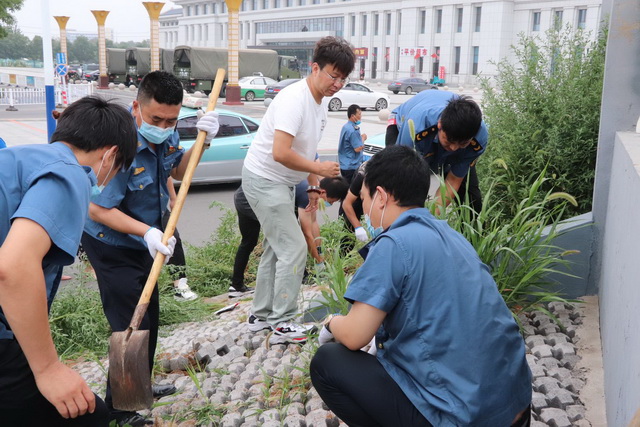在活動中,同志們手拿鐮刀、鏟子、掃帚等工具對火車站周邊樹坑及停車場衛生和雜草進行清理,充分發揚了不怕臟、不怕累的優良作風和團結協作的精神,以企業為單位,積極投身到環境衛生清除的行列中。把地面上、草叢里的塑料垃圾、廢棄紙巾、玻璃碎片全部撿起,把枯枝、雜草、落葉逐一清理。大家相互合作,認真、細致的打掃每個角落,確保衛生不留死角。經過一下午努力,南站廣場及周邊被清理得干干凈凈,面貌煥然一新,贏得了出行旅客的一致肯定和好評。